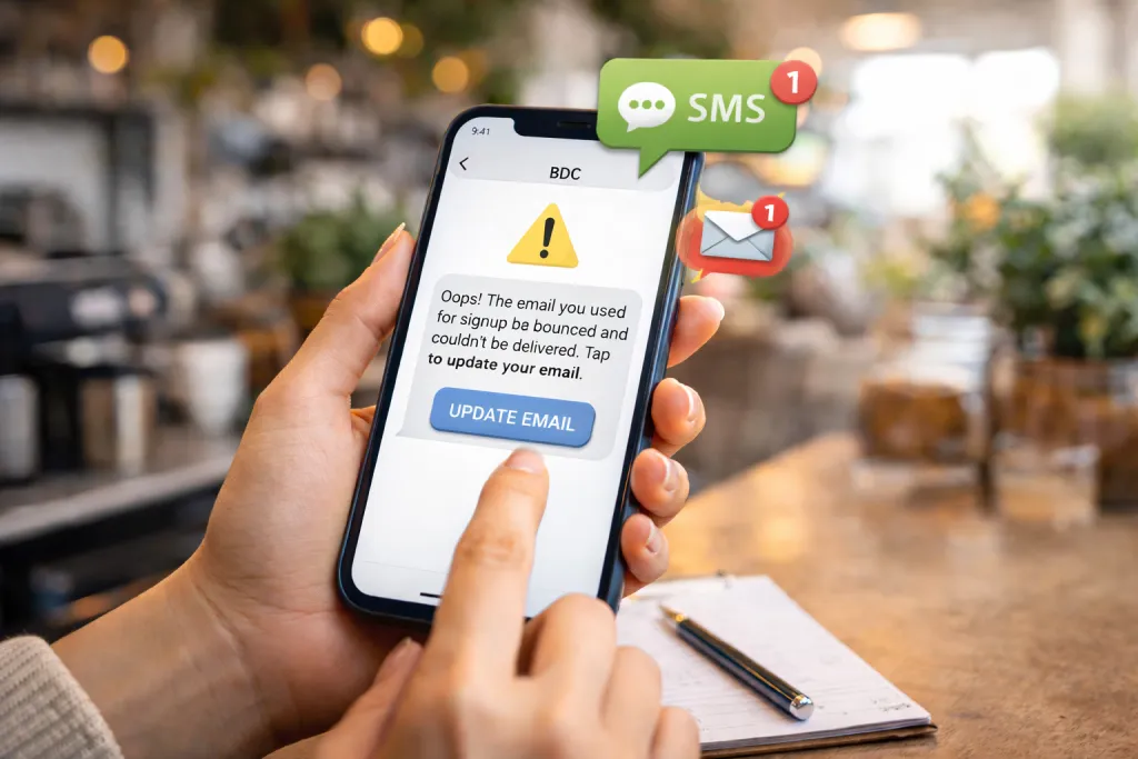 They add email to receive rewards and updates. SMS stays available as the reliable “backup lane.”